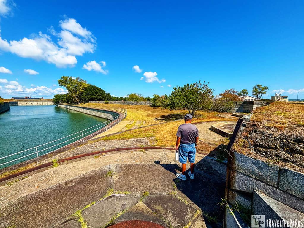 Fort Monroe’s Water Battery was the key to controlling the Chesapeake. Unlike the elevated main fort, this early-1800s structure sat directly on the shore, its cannons trained on the horizon to repel sea attacks. During the Civil War, it was the linchpin of Union naval strategy, earning the fort its “Gibraltar of the Chesapeake” moniker. Now integrated into the Seawall Trail, visitors can walk this historic ground, learn its story from signs, and take in the same commanding views it once defended.